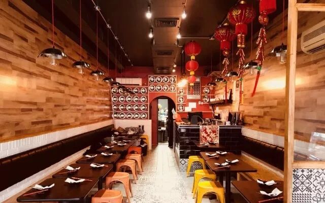 店铺面积虽然不算大,却玲珑精致。特别是店内的装修,可谓处处体现老板的用心。灯罩是用锅做的,通往后厨大门的整面墙更是挂满了臭臭“锅”。而头顶大红灯笼高高挂,营造出一种特别接地气的家一般的感觉。