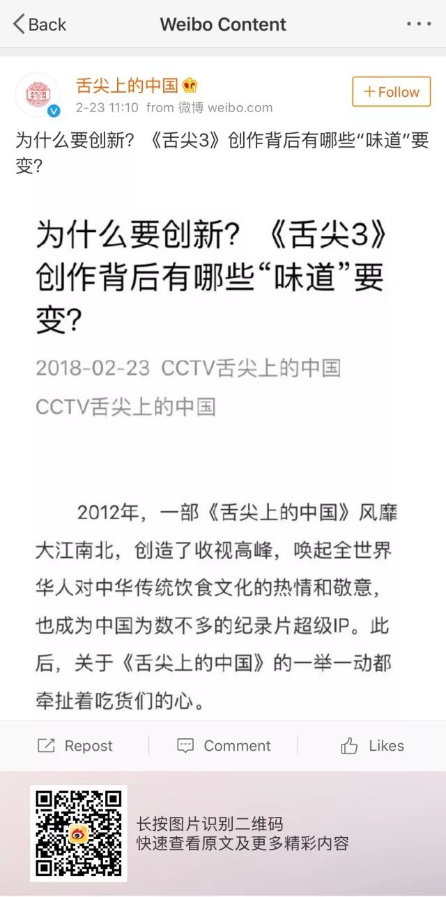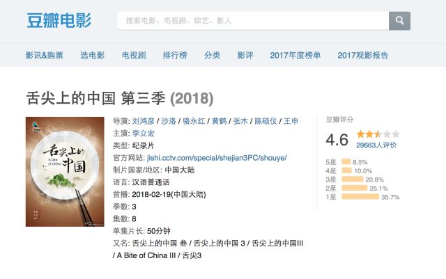 然而这第三季却遭遇了滑铁卢式的下跌,从刚播出一二集时的7分,到现在八集播完后跌至区区的4.6分并还有不断下跌的趋势。面对网友们的质疑,舌尖3的官方媒体昨日刚发表了对质疑的回复,表明这一切都是“创新”。