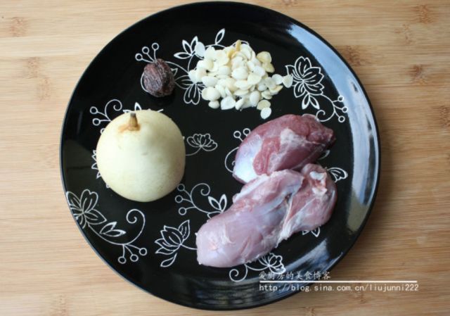 材料: 雪梨1个,南杏15个左右,瘦肉80g