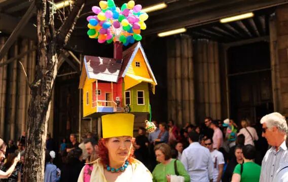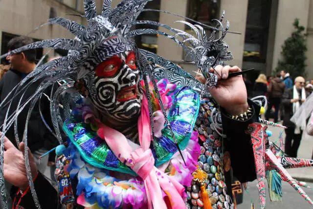 当然了,复活节怎么能少了盛大壮观的游行呢?在纽约,复活节的特色活动一定少不了一年一度在五大道举行的花帽大游行。在复活节这天,五大道会为狂欢而封路,大家穿上奇怪、有趣的装扮,戴上最浮夸的帽子,争奇斗艳。制作帽子的材料千奇百怪,花盆,胡萝卜,鸟笼……只有你想不到,没有做不到的。