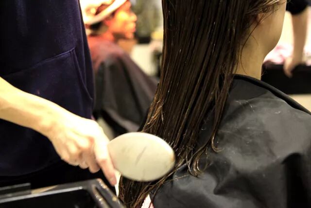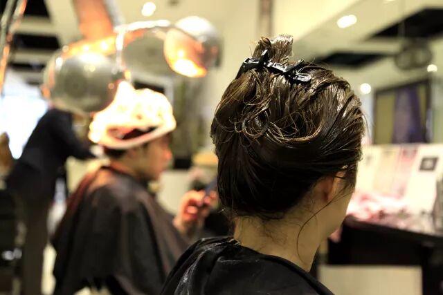 这款高级焗油的过程大概分为三步。首先,在头发的二分之一处向下多次涂抹焗油产品,经过按摩吸收约10分钟后进行清洗;然后再次涂抹产品,等待约5分钟;之后发型师将头发盘起,并使用蒸汽机让营养更好地滋润发梢,这个过程大概需要15分钟。
