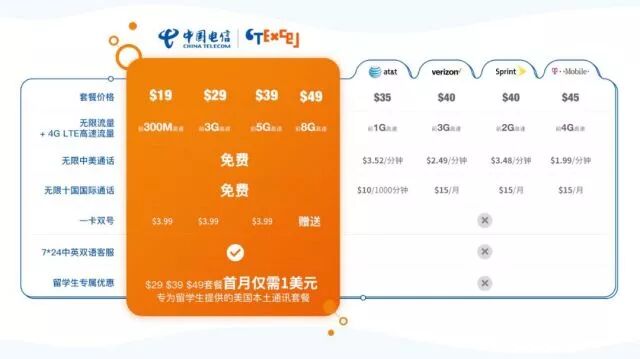 只要凭edu邮箱,学生可免费领取一张中国电信CTExcel美国电话卡,只需花1美元,即可在3款通讯套餐中任选其一(可选原价值$29,$39,$45的套餐,现在第一个月统统1美元!)
