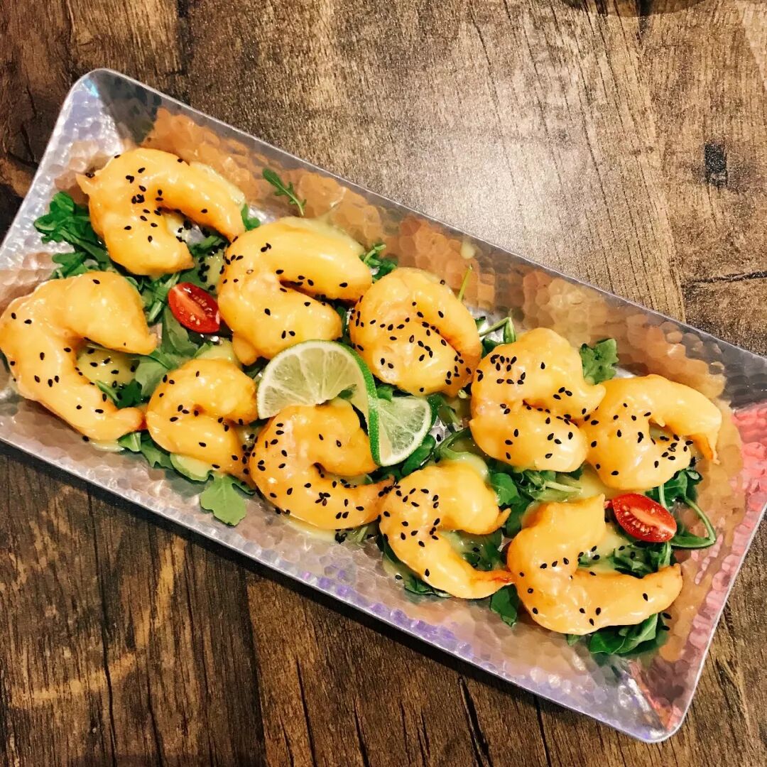 虾球口感细滑,外酥里嫩,配合柠檬和铺在虾球底部的沙拉,吃起来甜而不腻,令人回味~