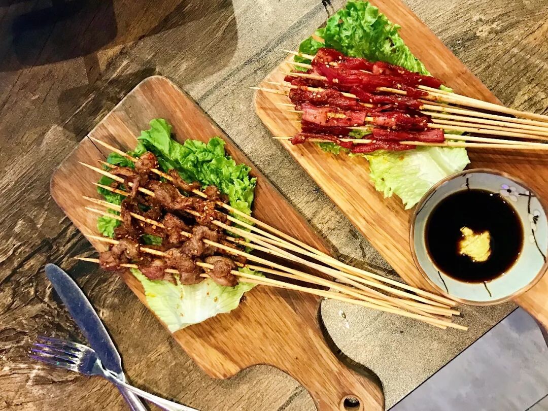 烤和牛串和生牛肉串的口感非常棒,肉质细嫩,腌制入味,蘸取一些酱油和芥末,风味独特。
