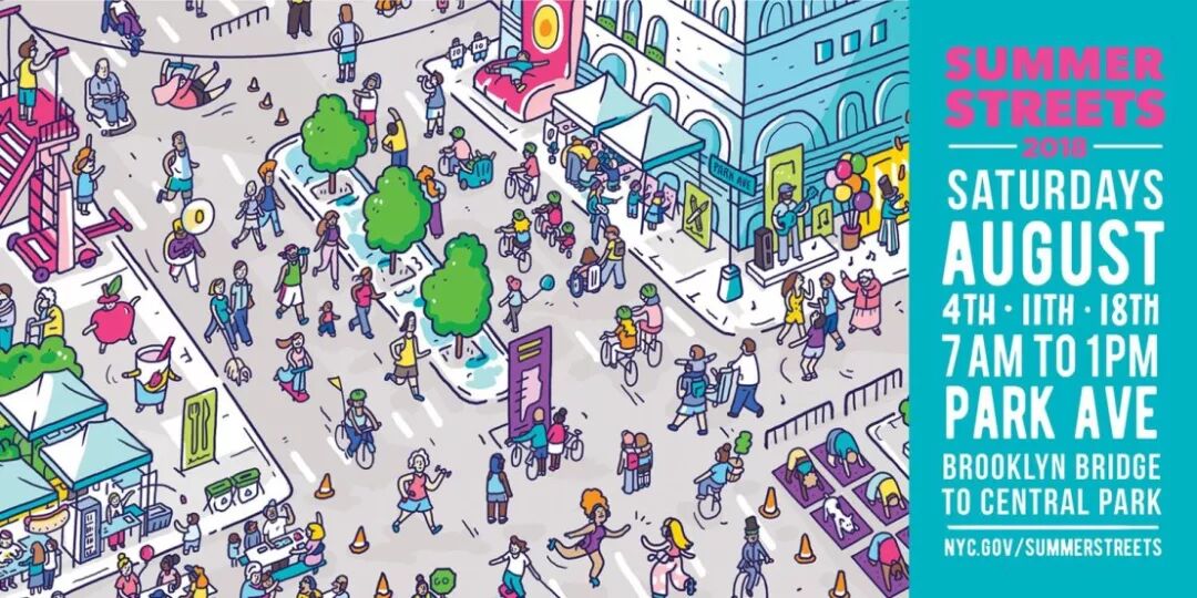 Summer Street是纽约交通部(New York City Department of Transportation,DOT)的一个项目。每年8月连续的3周,封路在Park Avenue公园大道上设立数个休息站,供人们玩乐放松,并且活动都是免费的~