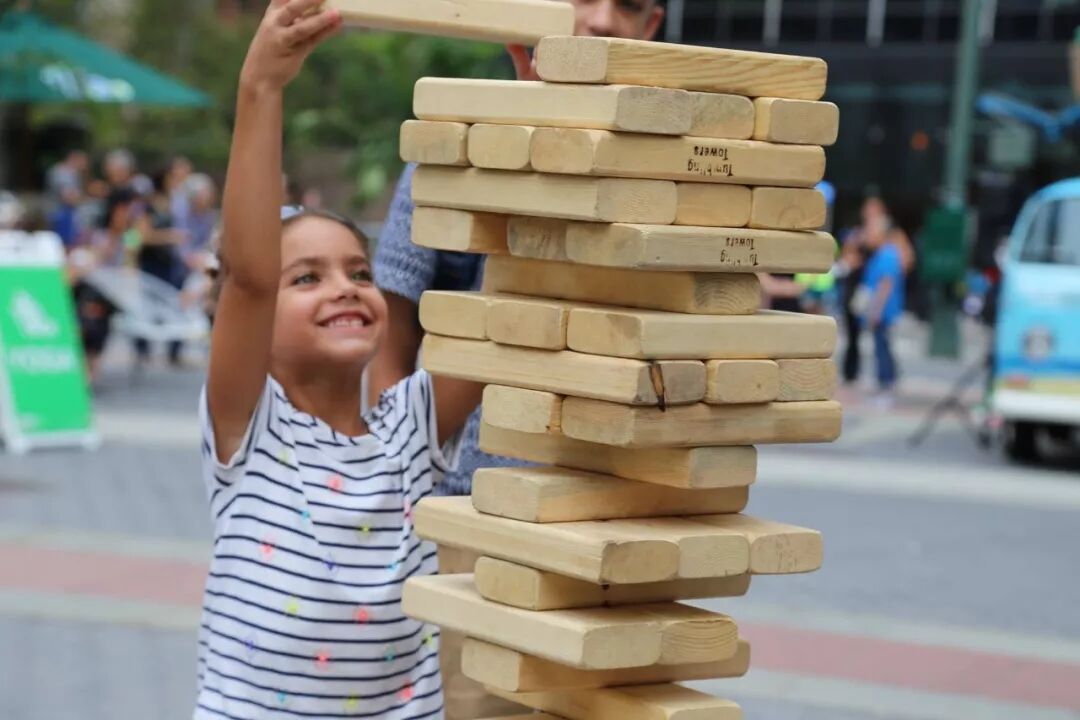 因为这个休息站离中国城比较近,华埠共同发展机构会提供道具供大家玩户外巨型象棋、中国象棋、屏风式四子棋(Connect Four)、叠叠乐(Jenga)等游戏。