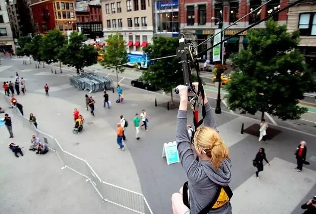 有想过在没有车辆的大街上滑索道、攀岩和健身吗?