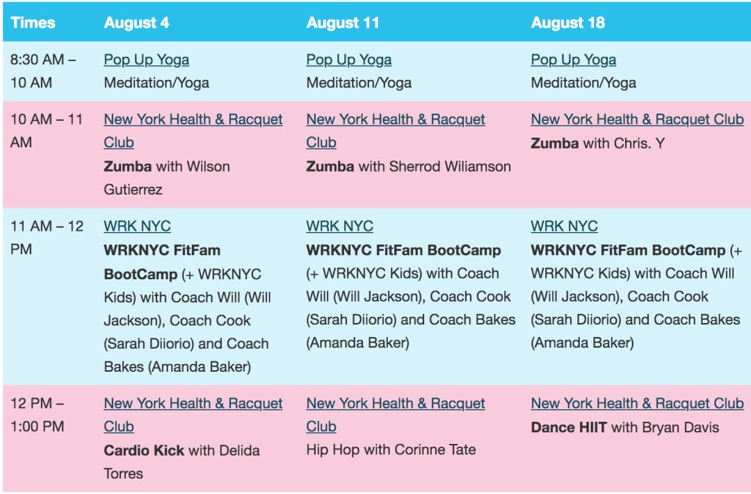 和众人一起参与露天健身课就在SoHo这个休息站啦,每天不间断提供瑜伽、尊巴舞、健身舞蹈等课程。课程安排表已附上,大家换上舒适的运动服,看好时间,早早去SoHo休息站和大家一起做运动吧!