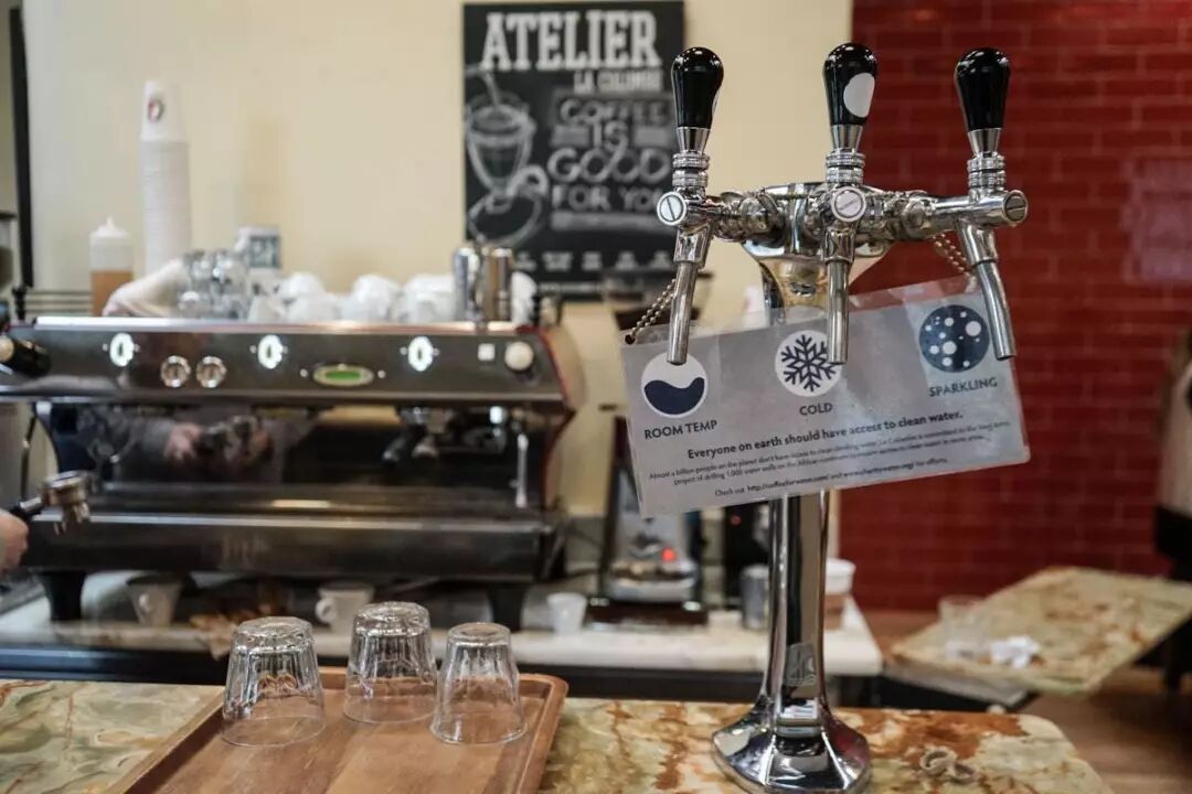 每一家La Colombe的门店也很贴心地提供了三种免费水:冷水、室温水和气泡水。没错,全部都是免费的!