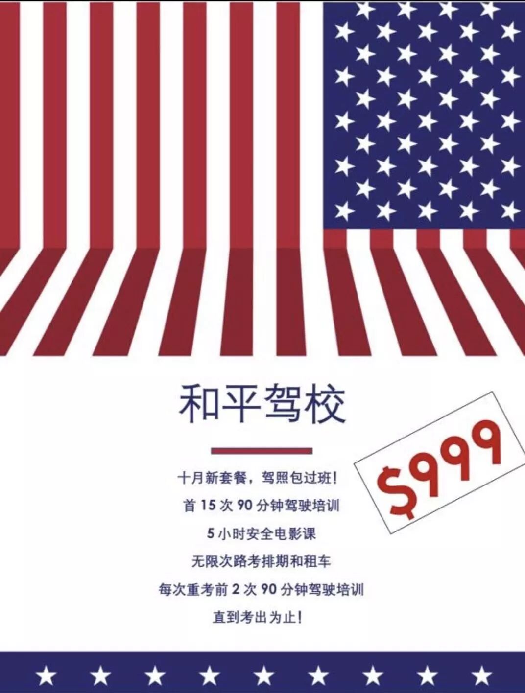 5次或5次以上包考套餐 每人立减$20