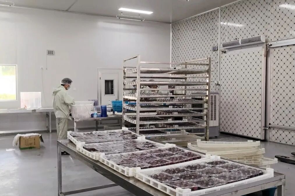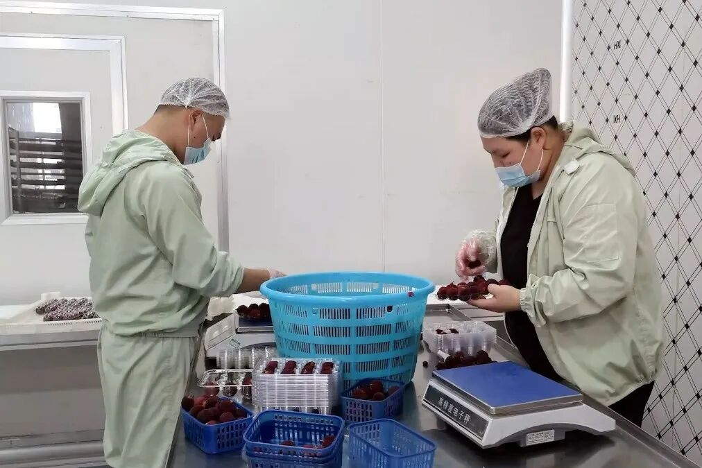 近日,在侨乡农产品精深加工仓储园区内,青田中智物产贸易有限公司工作人员在冷链车间里对今年青田杨梅最后一批出口海外的杨梅进行预冷抽湿、挑拣称重、密封包装。
