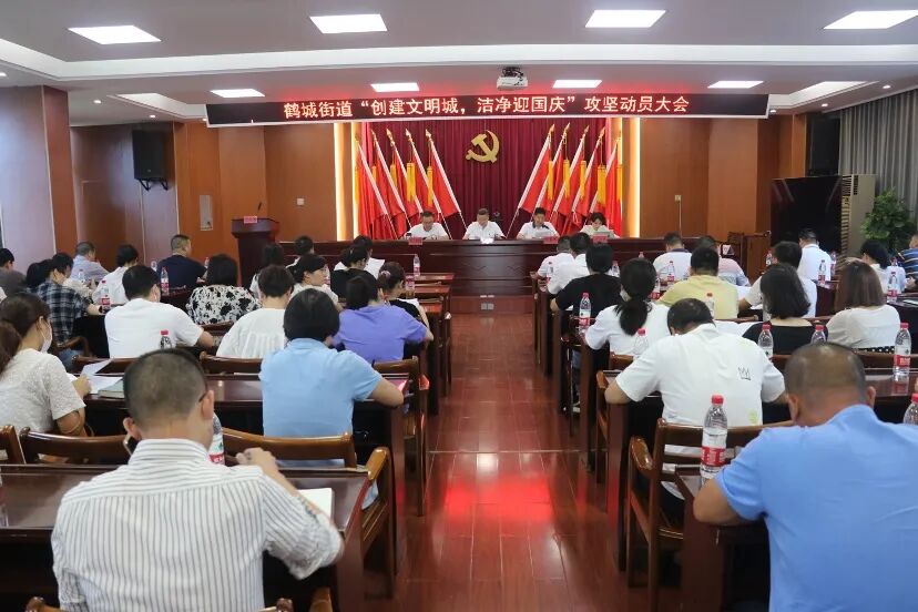 ※9月16日,鹤城街道召开“创建文明城 洁净迎国庆”攻坚动员会,街道全体干部及社区、城中村主职干部参加了会议。会议强调,大家要充分提高认识、严格对照标准、及时查漏补缺,用最短的时间实现主城区环境面貌大提升,交出文明城市创建的高分答卷。
