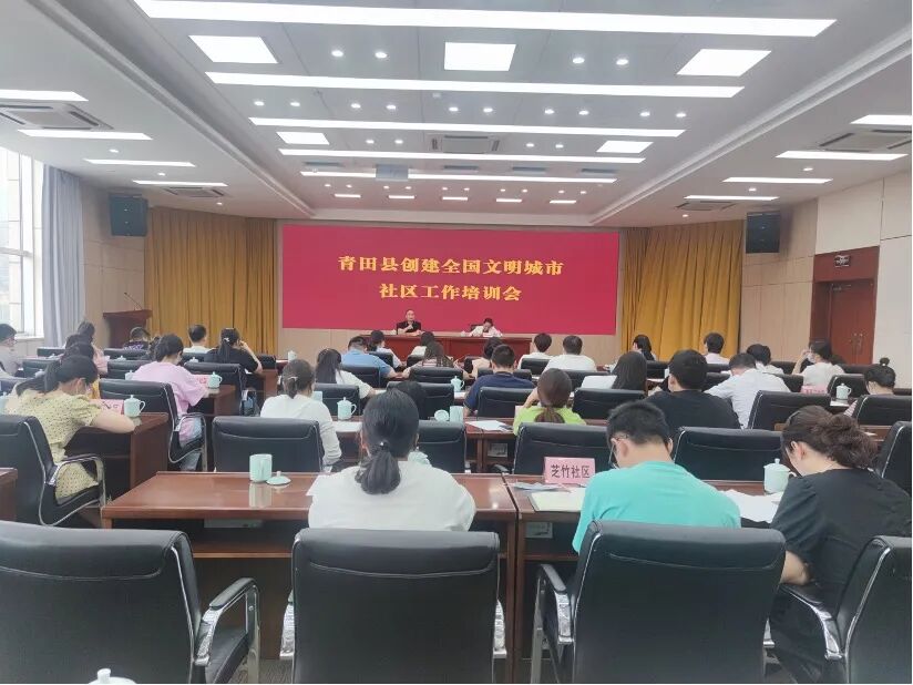 9月13日,邀请莲都区社科联专职副主席、小荷公益协会会长汤伟红来青开展创建全国文明城市社区工作培训,对社区、小区、背街小巷实地考察测评标准一一进行讲解分析,并就如何发动群众参与,做好社区、小区问卷调查进行了专题培训。街道、社区工作人员、志愿者等80余人参加。