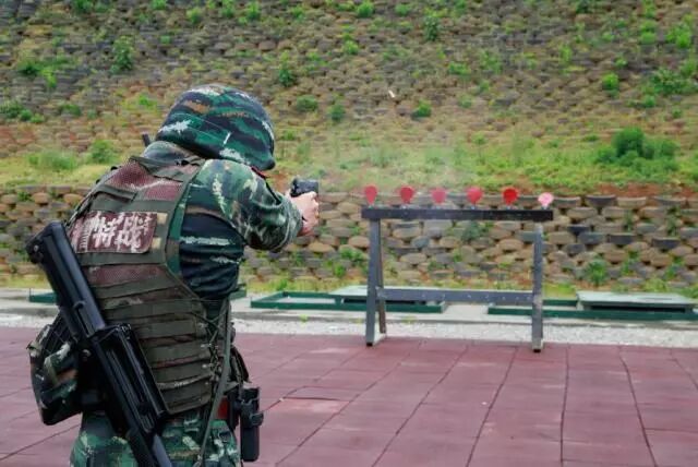 特战队员进行手枪快速精度射击训练