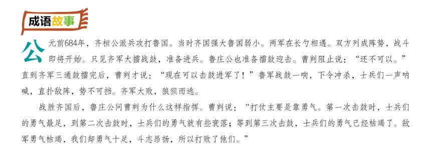 第二个故事属于拓展阅读,讲的是历史上相关的故事,涉及到名人、典籍、历史、地理等知识,进一步加深孩子对成语的理解,也积累了更加丰富的写作素材。