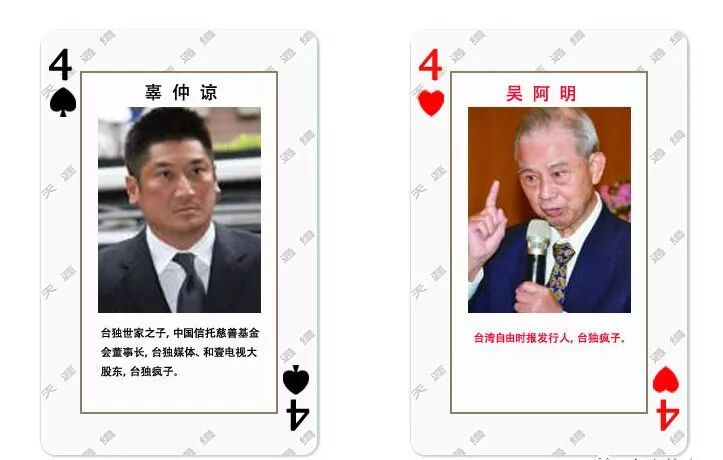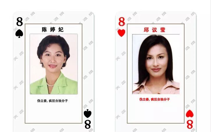 前日,《今日海峡》栏目根据这些“台-独”分子的危害,就精心制作了13张“台-独”分子扑克牌。不知道这算不算是真正的“黑名单”呢!