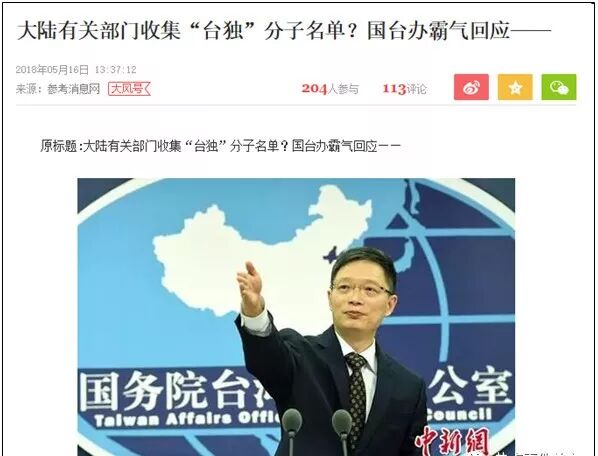 中国有关部门已经开始着手收集台独名单,并且对其“台独”言行进行备案——“台独”分子不要以为说过的话、做过的事可以“船过水无痕”。