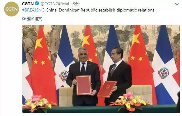 5月1日,多米尼加共和国宣布与中国建交,与台湾“断交”