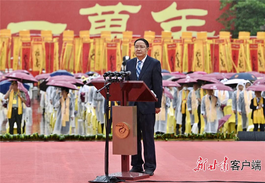 鼓停钟息。任振鹤恭读祭文,追思人文始祖伏羲“教垂万世,泽被八方”的大德伟业,歌颂在以习近平同志为核心的党中央坚强领导下各领域取得的辉煌成就,讲述陇原儿女牢记领袖嘱托,踔厉奋发、锐意进取,全面建设社会主义现代化幸福美好新甘肃的奋进故事,祈佑中华文明万世永续、伟大祖国繁荣昌盛、各族人民幸福安康!