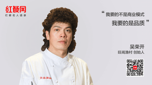 在楼上的包房里,红餐网(微信号:hongcan18)记者终于见到了这栋建筑物的主人,旺阁渔村的创始人吴荣开。一头微卷的长发配上爽朗浑厚的嗓音,他竟一点也不像年近50岁的人,谈笑间依然仿若20多年前那个拼命少年。