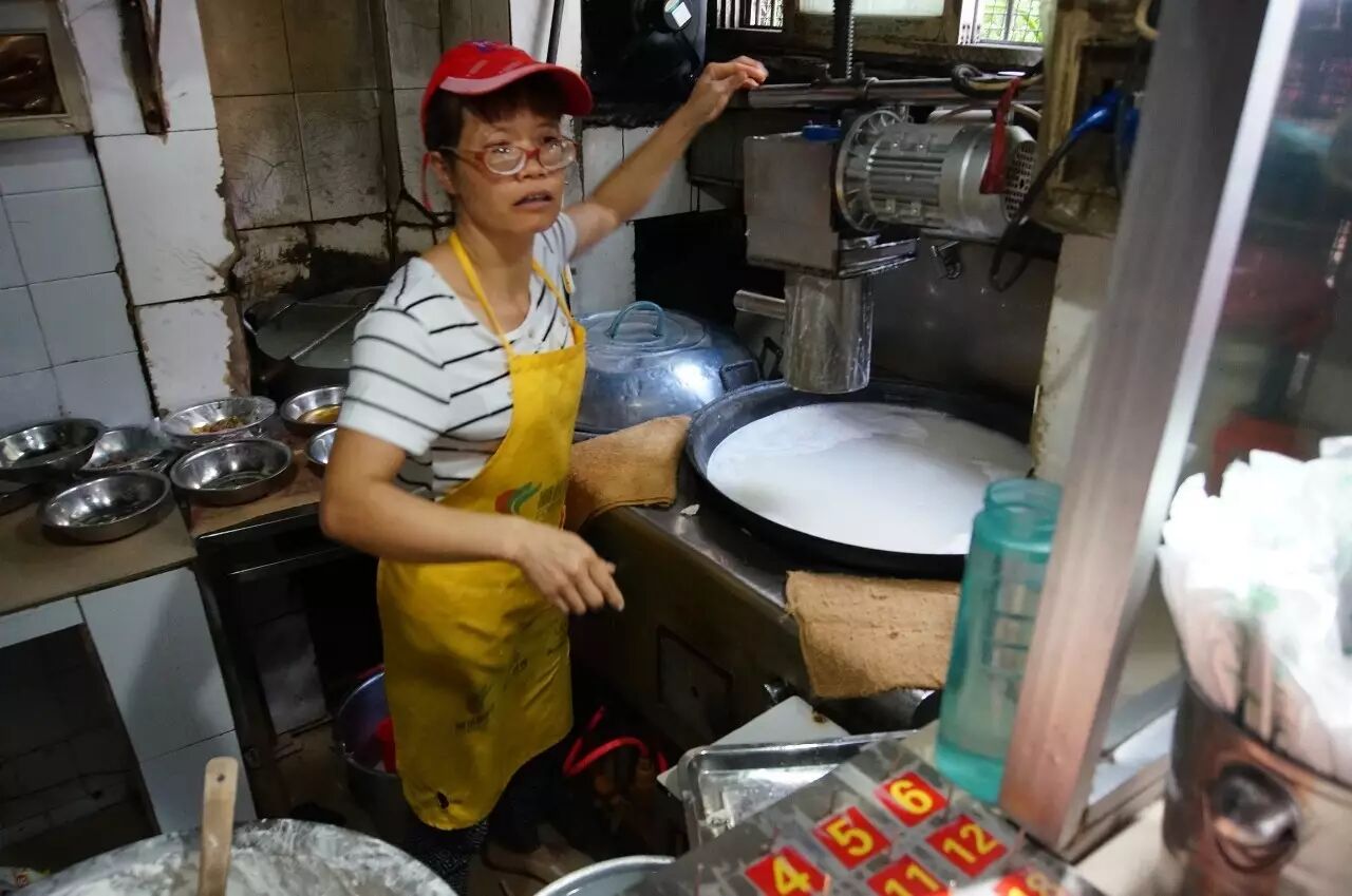 店里做粉的阿姨告诉南哥,她们每天晚上都要泡好足够量的大米,第二天一大早就要打好米浆。所以榨粉细细软软的,白白净净,很新鲜。每天从凌晨五点半就开门迎客,下午三点基本上米粉浆卖完,关店休息。