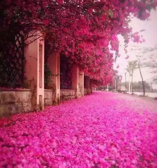 在青秀山脚下的栅栏边,有壮观又妩媚的成片三角梅。实在是太美了!