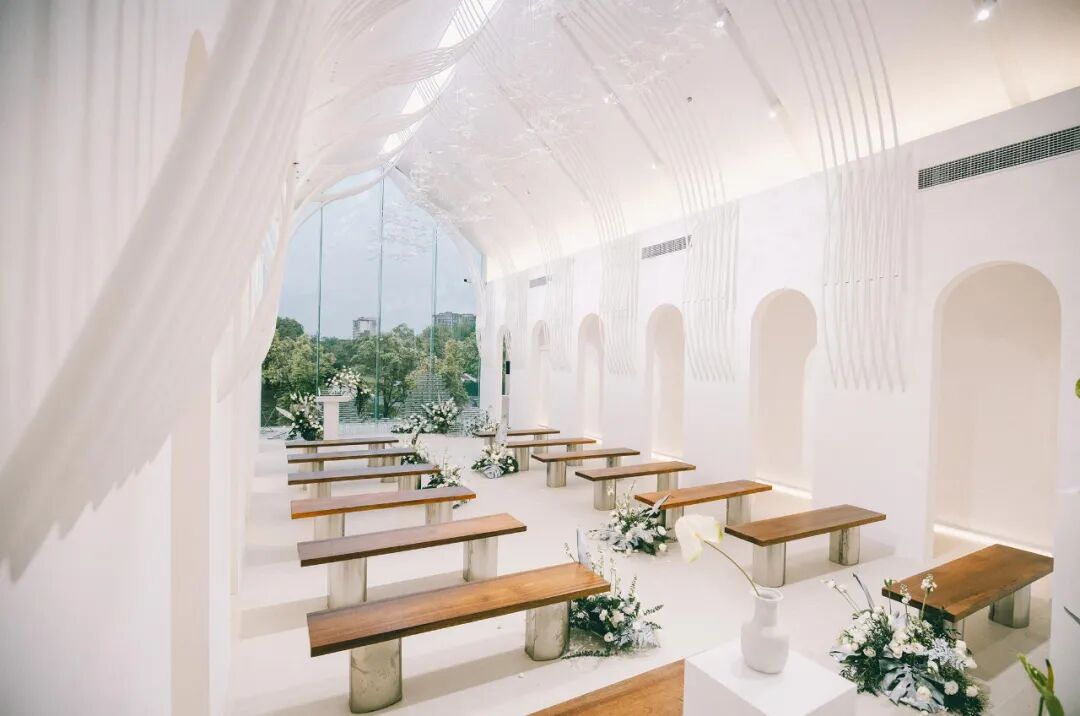 它简约唯美、仪式感十足,在这里举办婚礼仪式的新人仿佛在演绎一部偶像剧!