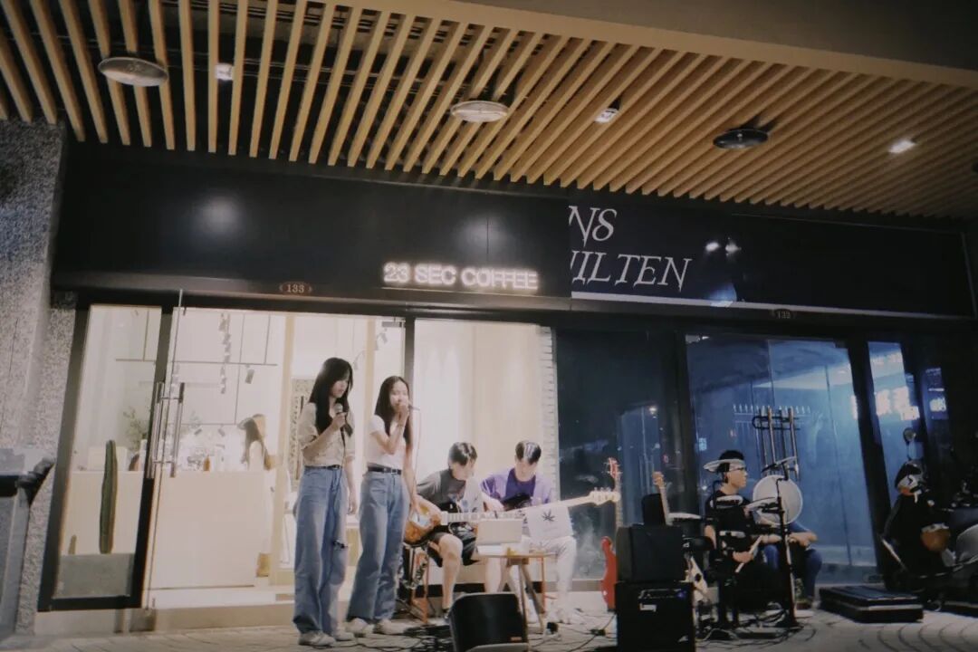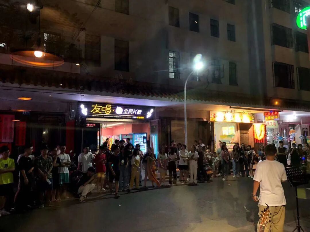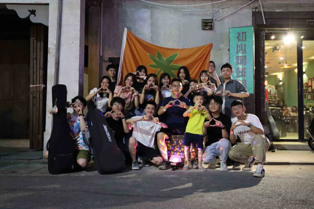 Dopamine 在这个夏天的最后一场街头音乐实验,选在西马路靠牌坊街的初心咖啡馆门口,我到的时候已经快 10 点,街对面站满了举着手机录像的人群,附近的水果汁摊因成了最佳观赏位置而座无虚席。