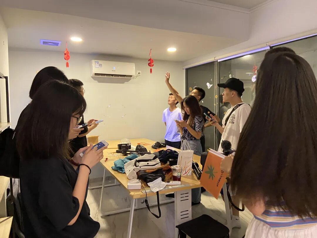 团员们陆续到场,大家嘻嘻哈哈的,没什么东西要搬的团员拿着旗子围在会议桌四周,没有很快离开,大家默契地开着稍微损人的玩笑:“终于不用再见到你了”,“猛滚”,熟人段子总是引得伙伴们哈哈大笑。