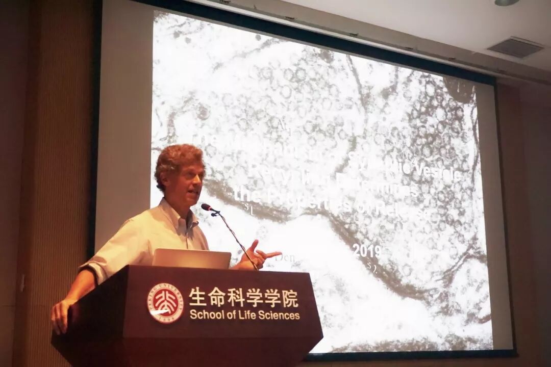 开幕式之后,来自加州大学旧金山分校(University of California, San Francisco)的Robert Edwards教授作了题为“Endocytic Recycling Pathway Determines the Properties of Neurotransmitter Release”的学术报告。Robert Edwards教授选择中脑多巴胺神经元作为研究对象,发现其释放谷氨酸和多巴胺时囊泡具有不同的短期动力学特征。而进一步的研究表明,这两种神经递质与突触前Ca2+通道的偶联不同,突触小泡的形成也依赖着不同蛋白介导的不同内吞机制,从而完成对不同的信号的分选传输。Robert的研究从分子层面揭示了突触前递质释放控制的精确性和复杂性。