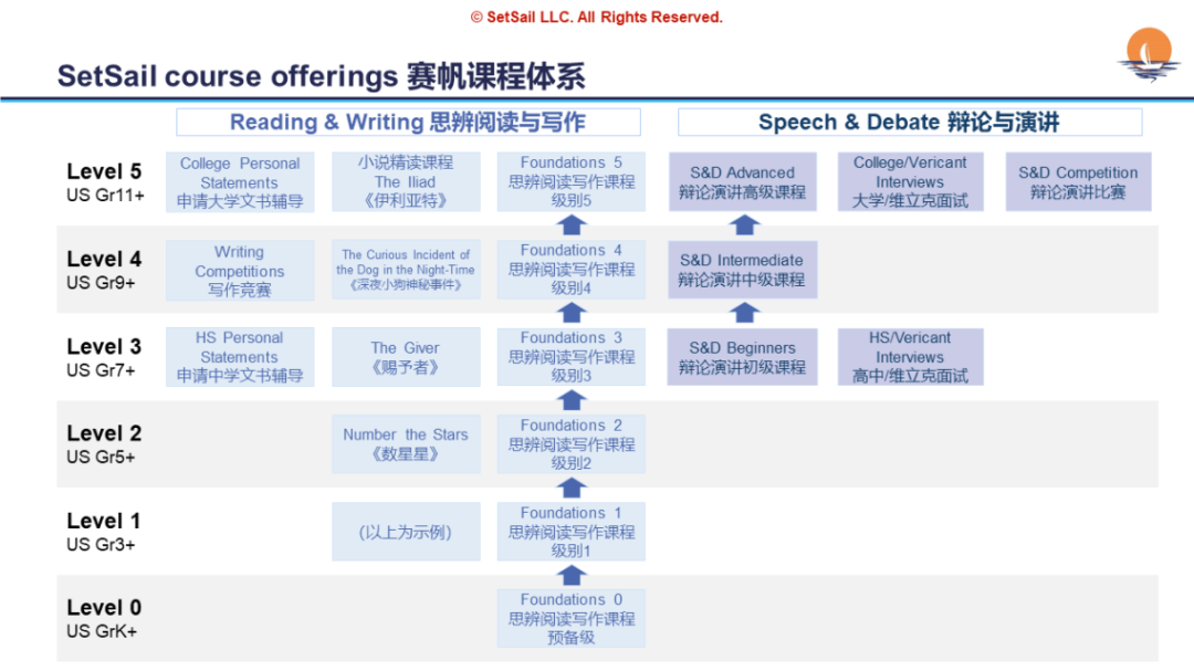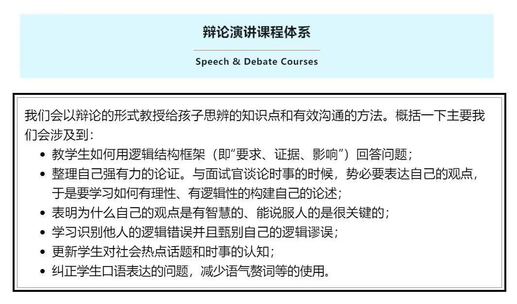 经过多年的磨合,为助力有梦想进入到世界级名校的孩子,赛帆开发出了阅读写作和辩论演讲两大课程,把以思辨为核心的学术英语培养体系带给了学生。