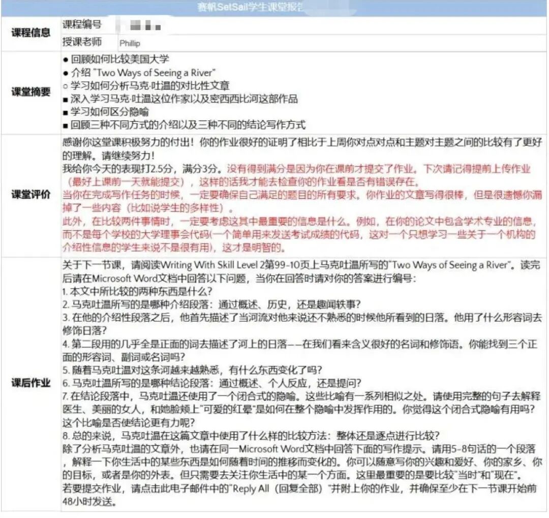 (▲红色部分完全针对学生的问题,绝不是模板化的评语;另外,课后作业要求之细很少有机构能做到)