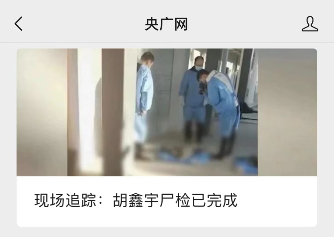 12时25分许,铅山县公安局接到群众电话报警称,在河口镇金鸡山区域树林中发现一具缢吊尸体。死者衣着与胡鑫宇失踪时衣着一致。