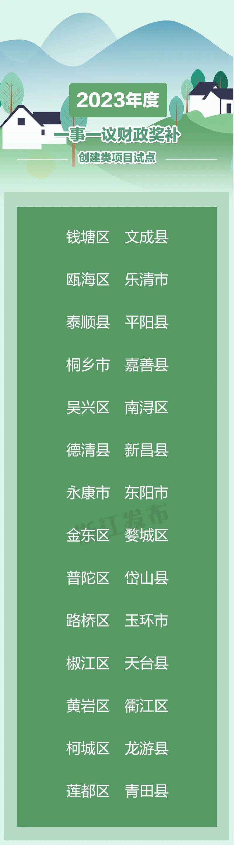 试点列入2023年度省财政奖补范围。试点工作紧扣共同富裕主题,通过以产业、资源、交通、人文等要素为纽带的多个行政村联结共建、抱团协作,着力在发展乡村产业、壮大集体经济、促进农民增收、提升宜居环境、优化乡村治理等方面持续发力,打造相近产业共兴、相邻地域抱团、资源共享共创、强村辐射带动等多种模式片区(组团)式乡村共富联合体,建设一批可推广可复制、具有浙江辨识度的高质量发展共富乡村样本。