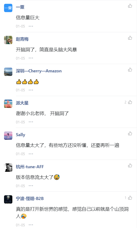 今年我们在大群里面讲的几节课,大受好评,今年我们再深化了亚马逊的内容。另外本身亚马逊站内的流量,太贵了,那么一方面未来肯定要走品牌化之路,另外一方面肯定也要想着获取站外的流量。所以如何把站外的流量,导入给产品,让产品获得更多的曝光,这对平台的卖家来说,还是非常值得学习的。