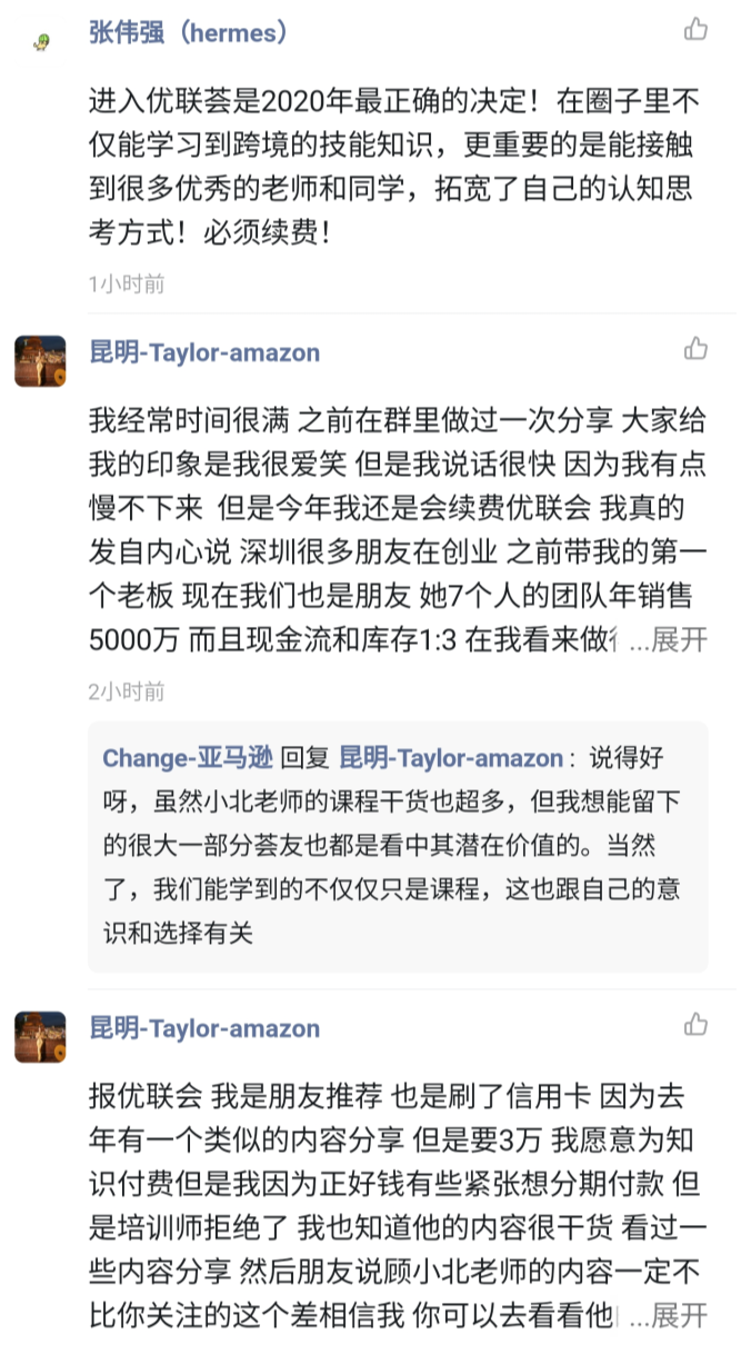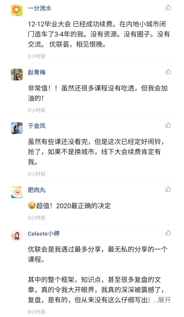 人和人最大的竞争力差距,其实是信息输入量的竞争。报名后,你就立马能看到我们圈子里面,几万条的信息,而且非常高质量。优联荟中,大家的反馈非常多,我觉得从用户的反馈,可以侧面对优联荟的认识。一些人说小北,群里反馈的肯定都是说好的的啊,截图也没用啊。