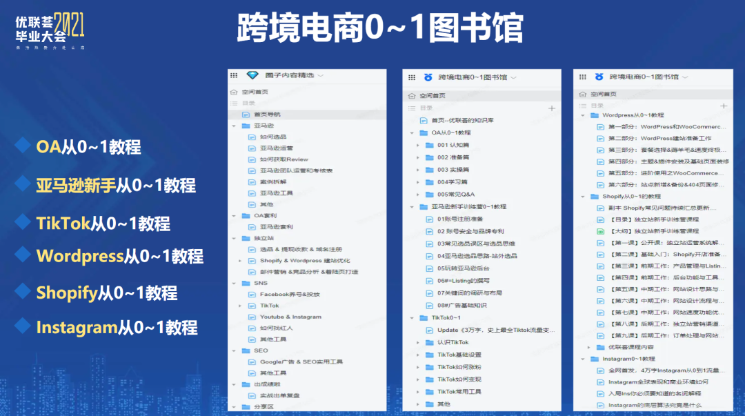 亚马逊,独立站,SEO,内容营销,Facebook广告,Google广告,网红营销,视频直播,还包括职场课程,还会不定时要求行业实战嘉宾进行分享...