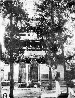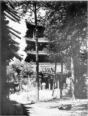 我们访问团到达日本第四天,正值元旦,相当我们国内过春节,非常热闹,除夕前要大扫除,门前摆吉祥物,要吃糯米糕、守岁。元旦这天,人们还要争相朝拜神社,家家户户请达摩。我们访问团是元旦这天如约访问京都达摩寺的。上午10时左右,我们一行6人到达达摩寺,达摩寺住持广濑正史等人已经在门口迎候。几年前,广濑正史住持曾率达摩寺僧众访问过少林寺,由我师父行正长老接待的,当时我也在场协助师父招待客人,所以,广濑正史住持很快就认出了我。他们很热情地把我们请进了达摩殿,用日本传统的茶道招待我们。广濑正史住持兴致勃勃地向我们回顾了上次参拜少林寺祖庭的情景,我也向广濑正史住持介绍了少林寺最近几年来的变化。这时,广濑正史住持抱来几大本影集让我翻阅,他告诉我,近百年来达摩寺数代僧人常到中国拍摄寺院建筑和佛教文物,用来充实和推进日本佛教。在一本老影集里,我忽然看见了一组少林寺早年景象的照片,细看下面说明文字,这组照片竟是拍摄于日本大正九年,即石友三火烧少林寺前8年的1920年!