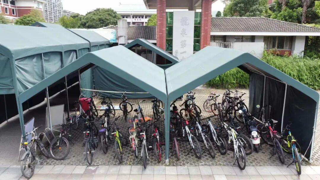 7月21日,中午11点,龙泉第一中学周边停满电瓶车,大量学生从一幢教学楼涌入另一幢教学楼;