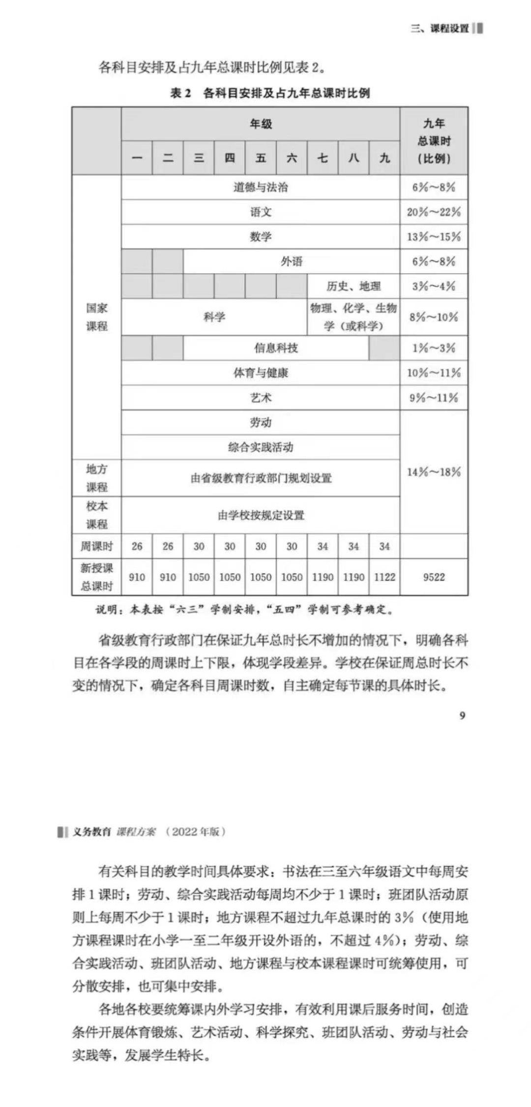 今年,教育部印发义务教育课程方案和课程标准(2022年版),公布,该标准将于2022年秋季学期开始执行。有人注意到新课标的课时比例表: