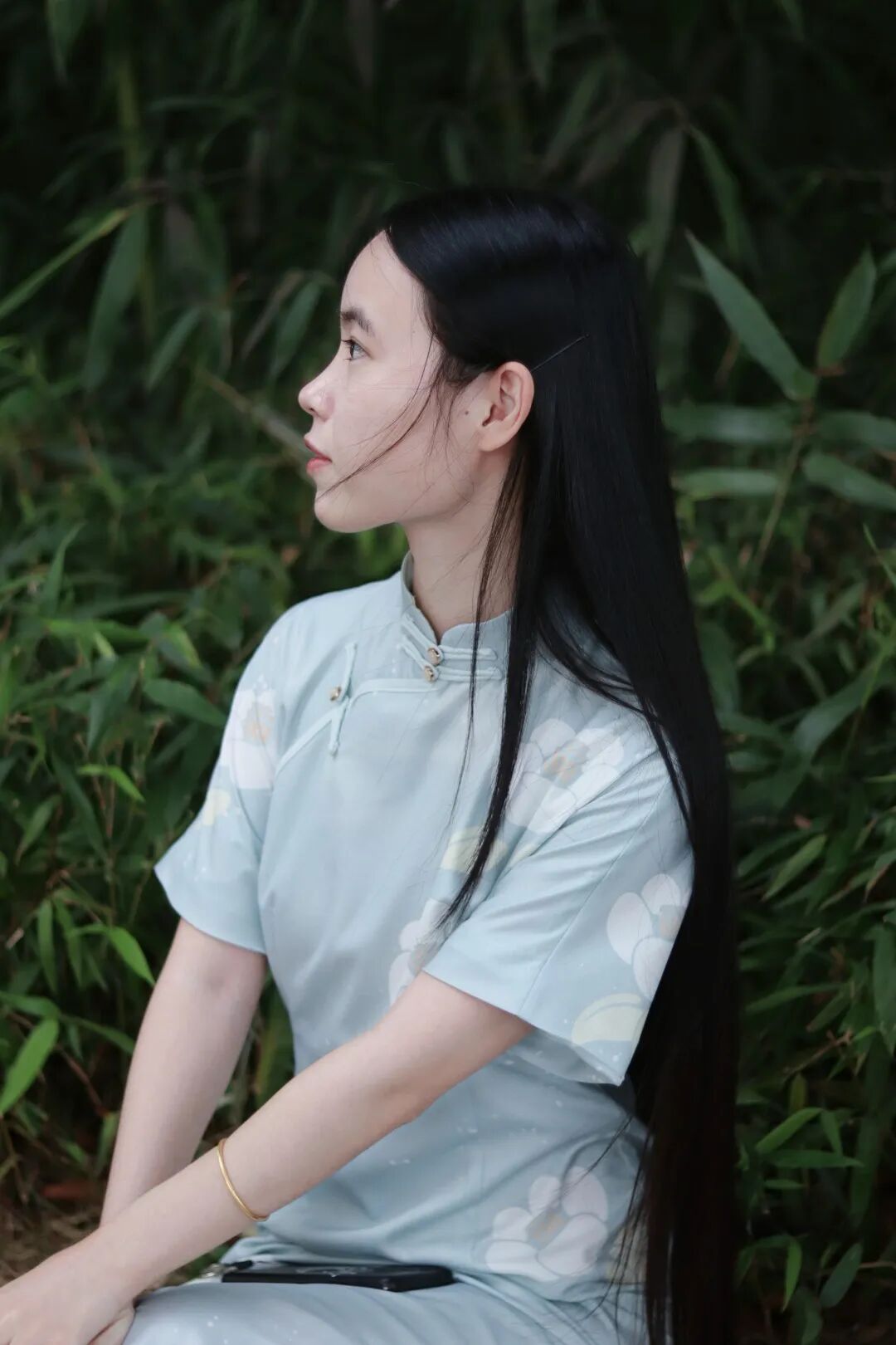 罗诗晨昨天说,大二时,自己的头发长到齐腰处,更加舍不得剪,每年就修个发尾,一直保持在齐腰处。