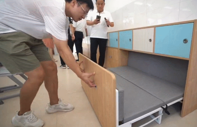 昨天,厦门金尚教育集团总校长林洲辉展示了他们为低年级孩子准备的午休床——它藏在教室三面墙的储物柜,午休时,学生们先把课桌椅挪动到教室中心,再把隐藏在储物柜里的床拉出来,教室秒变午休室。