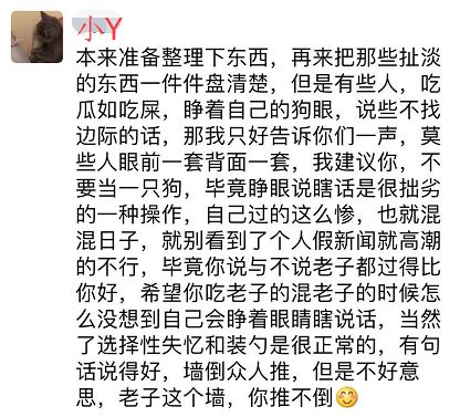 此后,小Y也首次在微信朋友圈做出了回应↓