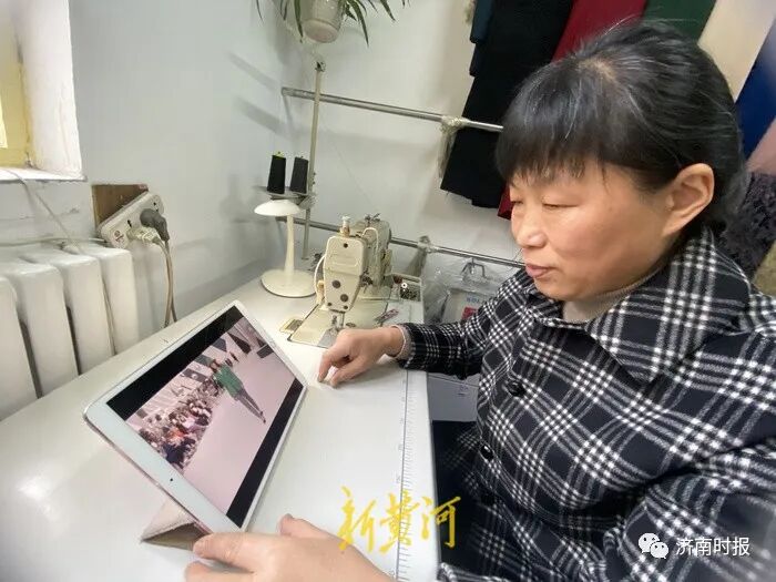 记者见到冯华时,她正在缝纫机前用平板电脑观看网络平台上的新式缝纫技巧教学直播。
