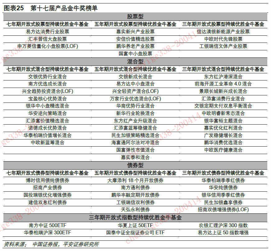 以下为产品金牛奖榜单: