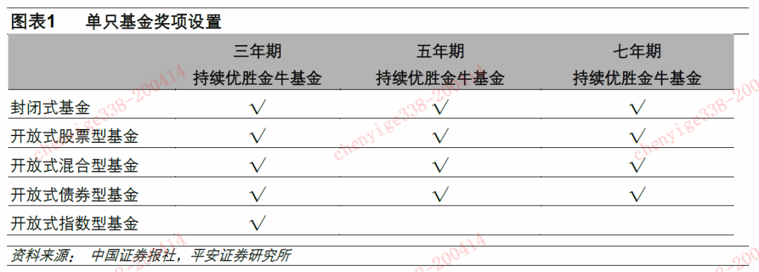 基金管理公司奖项则包括“金牛基金管理公司”、“权益投资金牛基金公司”、“固定收益投资金牛基金公司”、“海外投资金牛基金公司”、“被动投资金牛基金公司”、“量化投资金牛基金公司”和“金牛进取奖”,共计7个奖项。