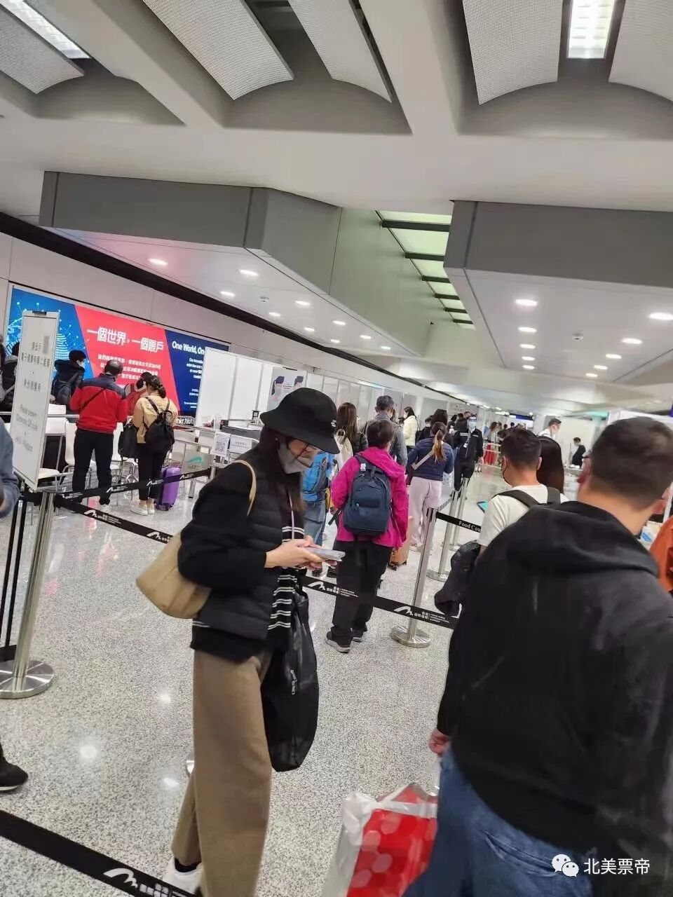 【图:抵达香港机场排队等待检疫】