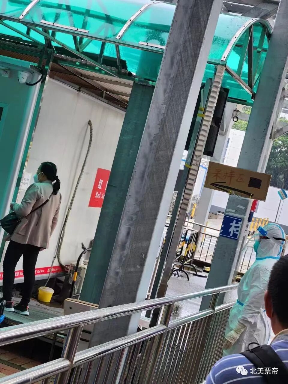 【图:排队等待咽拭子采样】