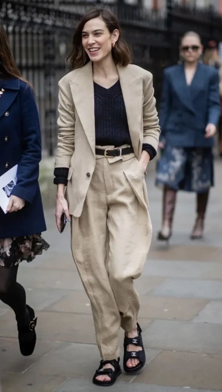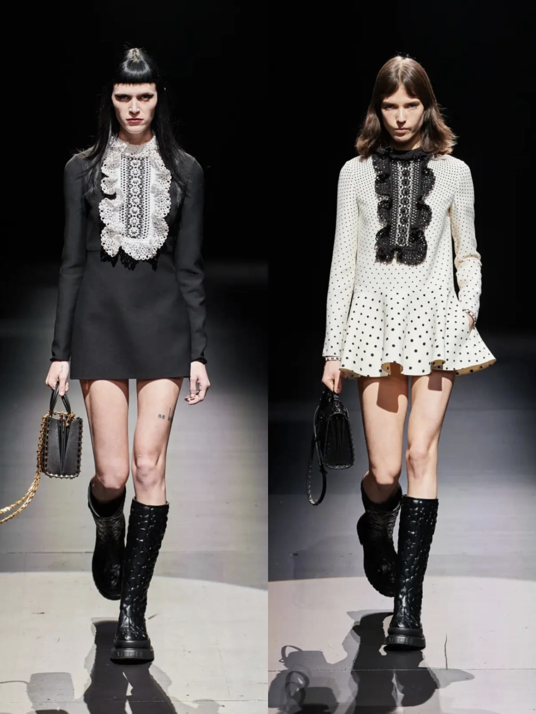和长靴、平底皮鞋的搭配,成了这一次黑丝回潮的关键所在。