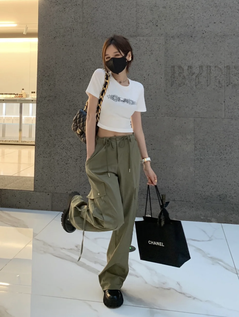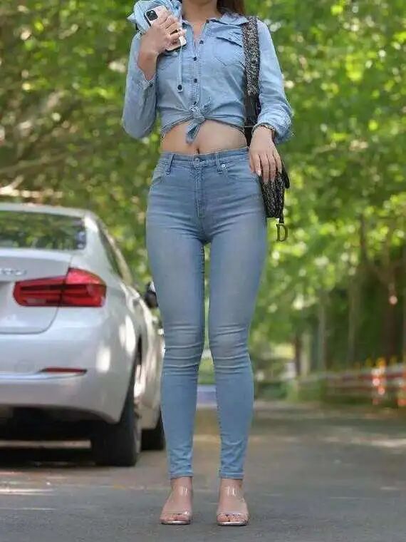 虽说下装的腰线比较低,但穿着紧身的小上衣或者直接露出腰线,并不会十分压个子。